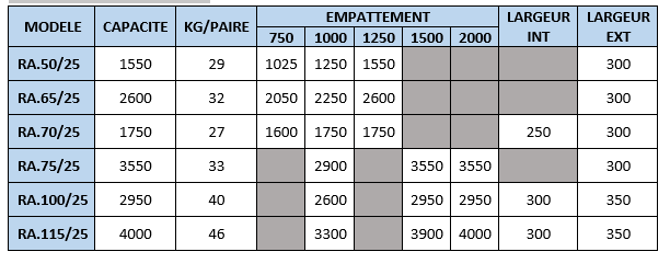 ATTENTION : Lors du choix de votre paire de rampes, il est impératif de tenir compte du poids du chauffeur, du poids de votre équipement (godet, épareuse, broyeurs...) ainsi que le poids du chauffeur. Il est OBLIGATOIRE de rajouter au minimum au tonnage exact de votre machine 300kg.