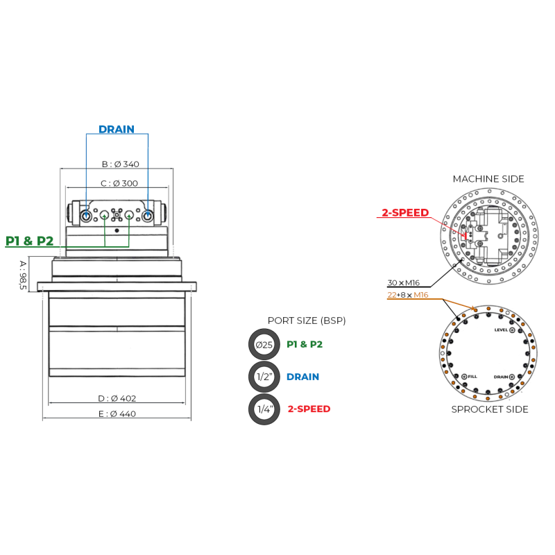 | Diamètre coté barbotin (entre perçages) | 440mm |